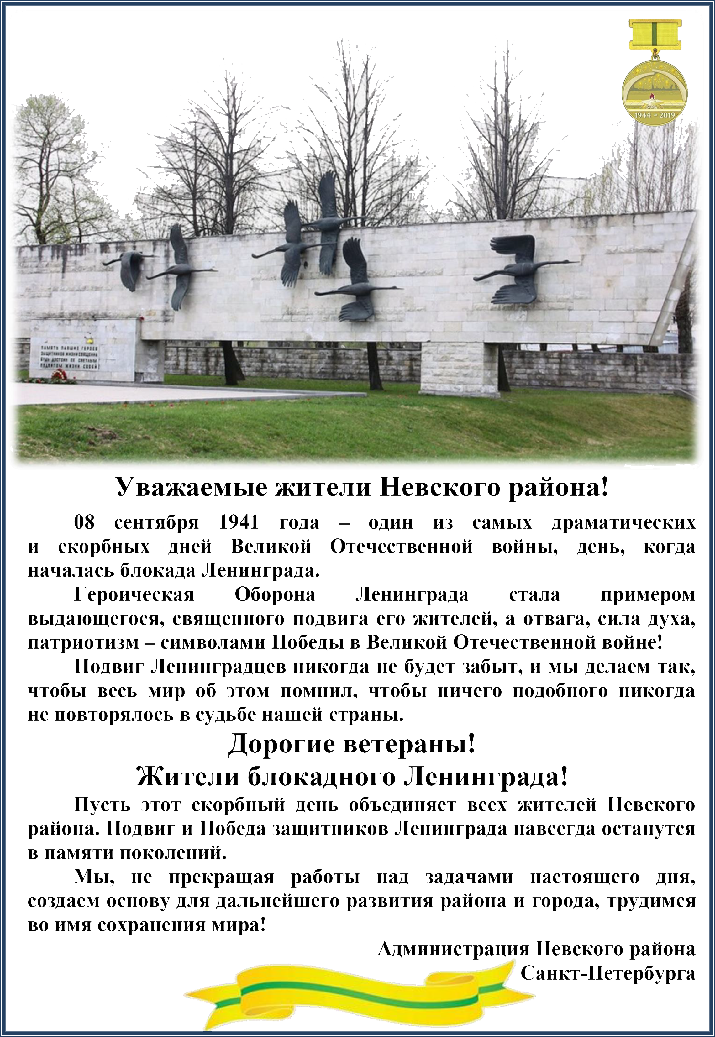 27 января в 11.00 на Невском воинском кладбище «Журавли» (Дальневосточный пр., у д. 55) состоится торжественно-траурный церемониал, посвященный Дню полного освобождения Ленинграда от фашистской блокады.