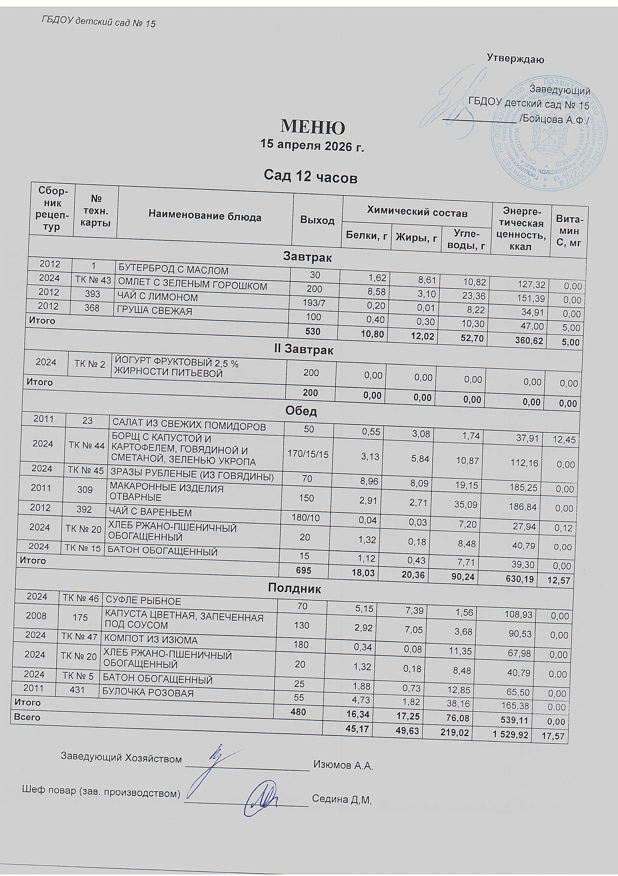 | Основное (организованное) меню (дифференцированное по сезонам и возрасту), которое размещается в виде сканкопии утвержденного документа по установленной законодательством форме |